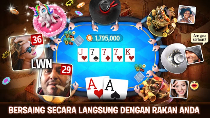 Poker Texas Holdem menawarkan pengalaman kasino poker talian yang hebat. Sertai pemain lain di seluruh dunia dan jadi bintang dalam permainan poker sosial berbilang pemain yang menyeronokkan dan sentiasa berkembang ini.