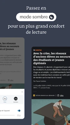 Kami di Le Monde sentiasa komited untuk memperkaya pengalaman membaca anda. Sesuaikan keselesaan mata dengan mod gelap dan pelarasan saiz fon. Tandakan artikel untuk dibaca kemudian, dan susun semula bahagian berita kegemaran anda untuk akses pantas kepada topik yang paling penting bagi anda. Le Monde terkenal dengan penyampaian maklumat yang teliti, mendalam, dan boleh dipercayai merentasi spektrum topik yang luas. Dapatkan berita terkini dari Perancis, Eropah, dan seluruh dunia, serta liputan komprehensif dari bahagian Antarabangsa, Planet, Politik, Masyarakat, Ekonomi, dan banyak lagi. Tidak ketinggalan, ikuti semua acara sukan utama, perkembangan sains, teknologi, budaya, dan seni.