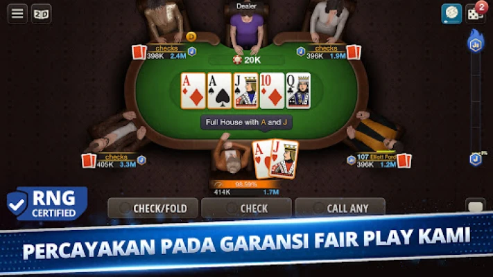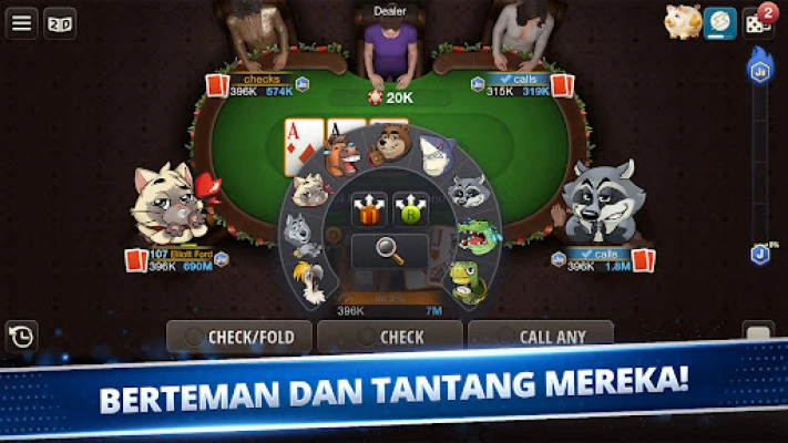 Sama ada anda pakar Texas Hold 'Em atau ingin mencuba strategi Omaha, platform ini menawarkan kedua-dua varian untuk pengalaman yang mendalam. Cipta meja peribadi anda sendiri untuk sesi santai bersama rakan-rakan, atau sertai meja umum untuk berinteraksi dengan komuniti yang luas. Dapatkan 'Respect' daripada pemain lain, kumpul cip dan syiling, serta hantar hadiah untuk mengeratkan hubungan. Inilah masanya untuk menonjol di kalangan jutaan pemain lain, membuktikan kemahiran poker anda yang tiada tandingan. Mari bermain dan takluki arena poker!