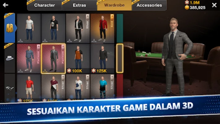 Selami dunia poker yang belum pernah anda alami, di mana setiap pemain adalah unik dan ekspresi diri adalah kunci. Mulakan perjalanan anda dengan mencipta avatar 3D peribadi yang sempurna; pilih daripada pelbagai gaya rambut, pakaian, dan aksesori untuk mencerminkan gaya anda sepenuhnya. Lebih menarik lagi, raih barangan eksklusif dan item edisi terhad sebagai ganjaran istimewa yang hanya tersedia melalui penyertaan dalam acara-acara khusus, memastikan karakter anda sentiasa menonjol.