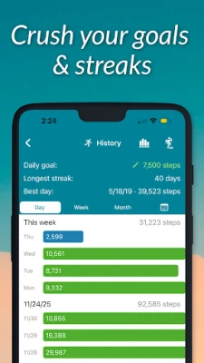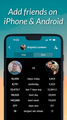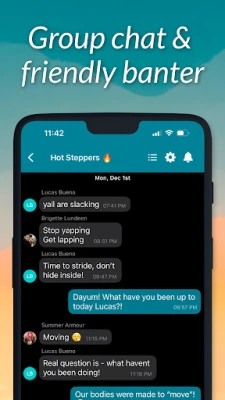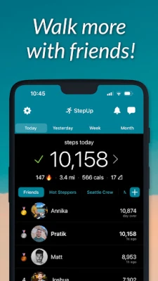 Dengan StepUp, jejak langkah harian anda, jarak diliputi, dan kalori terbakar secara automatik. Tetapkan matlamat peribadi dan saksikan kemajuan anda setiap hari dengan mudah. Keseronokan sebenar bermula apabila anda terlibat dalam cabaran langkah kaki bersama rakan, keluarga, atau rakan sekerja. Bersaing secara sihat dalam masa nyata, lihat siapa yang mendahului, dan saling menyokong (atau mengusik!) untuk mencapai potensi terbaik anda. Kajian menunjukkan bahawa bersenam dengan orang lain meningkatkan motivasi, dan StepUp memudahkannya dengan membolehkan anda membuat kumpulan sehingga 1500 orang – satu ciri yang dipercayai oleh organisasi terkemuka seperti Amazon, Google, dan Yale untuk penglibatan komuniti yang sihat. Bagi mereka yang memilih perjalanan kecergasan yang lebih peribadi, StepUp turut menawarkan rakan maya seperti 'Active Bot' dan 'Chill Bot' untuk pertandingan yang menyenangkan.