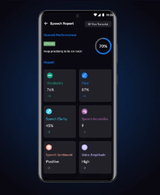 Stimuler App menawarkan pendekatan yang mudah namun berkesan untuk meningkatkan kemahiran anda. Prosesnya semudah menerima soalan, merakam diri anda selama 60 saat, kemudian menerima maklum balas segera yang dijana oleh AI. Sistem canggih kami menganalisis pelbagai aspek ucapan anda, termasuk sebutan yang tepat, kefasihan bertutur, kekayaan kosa kata, dan ketepatan tatabahasa. Malah, ia turut menilai emosi yang anda sampaikan, semuanya secara automatik dan pantas, memberikan anda panduan yang jelas untuk penambahbaikan.