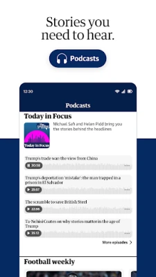 Tingkatkan cara anda menikmati kandungan dengan ciri-ciri inovatif yang ditawarkan oleh Guardian. Sama ada anda dalam perjalanan atau berehat di rumah, akses semua podcast kami yang memenangi anugerah melalui tab podcast khusus, lengkap dengan pemain audio dalam aplikasi yang baharu untuk penemuan yang lebih mudah. Untuk kemudahan tambahan, manfaatkan kemudahan teks-ke-ucapan yang dipertingkat, membolehkan anda mendengar artikel kegemaran anda secara bebas tangan. Dan jangan lupa, segarkan minda anda dengan Hub Teka-Teki Guardian, menampilkan permainan popular seperti On the ball, Film reveal, Wordwheel, Wordiply, dan Sudoku, sempurna untuk mengisi masa lapang anda.