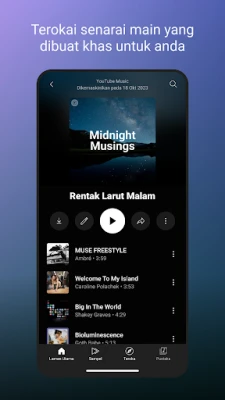 YouTube Music menghubungkan anda dengan dunia muzik yang luas. Temukan persembahan langsung, adunan semula eksklusif dan ribuan senarai main pelbagai genre. Nikmati muzik diperibadikan, senarai main aktiviti khas, dan terokai lagu baharu yang sesuai untuk setiap detik anda.